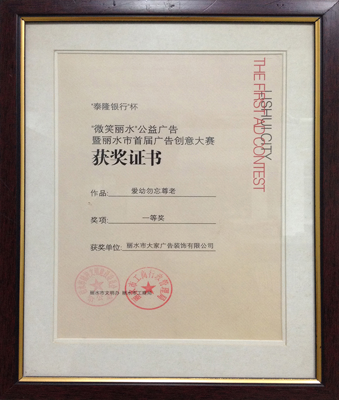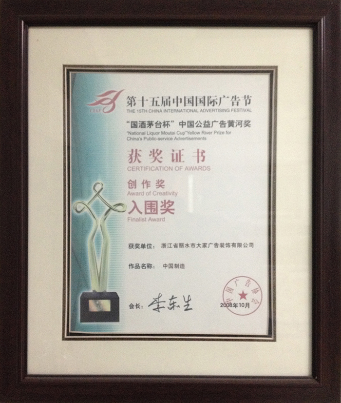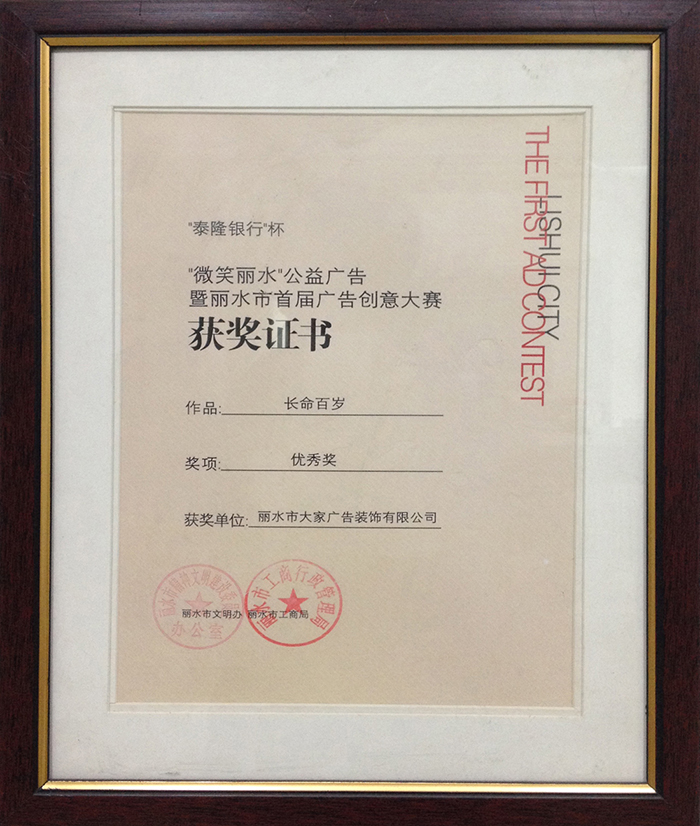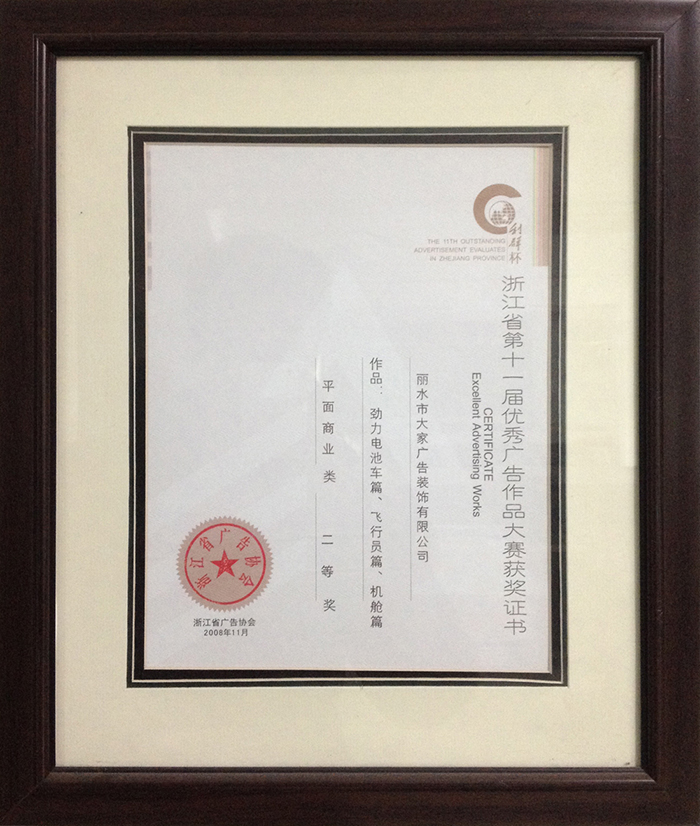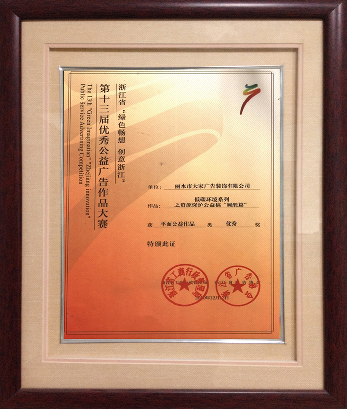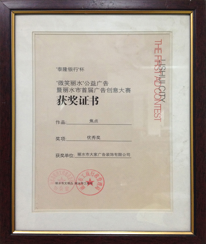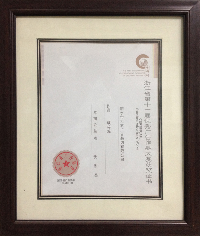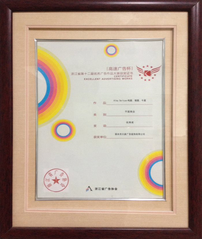 優(yōu)秀廣告作品賽獲獎證書