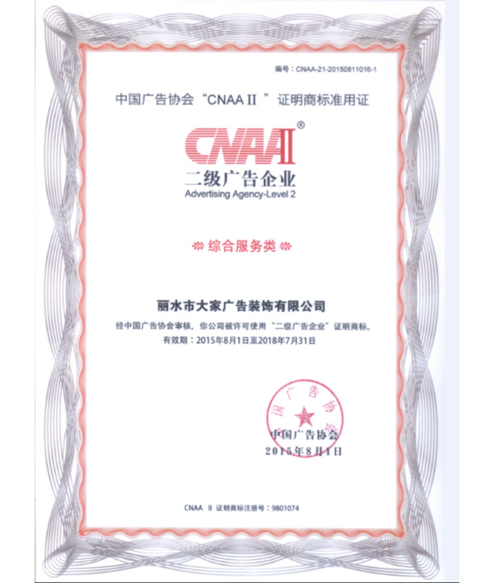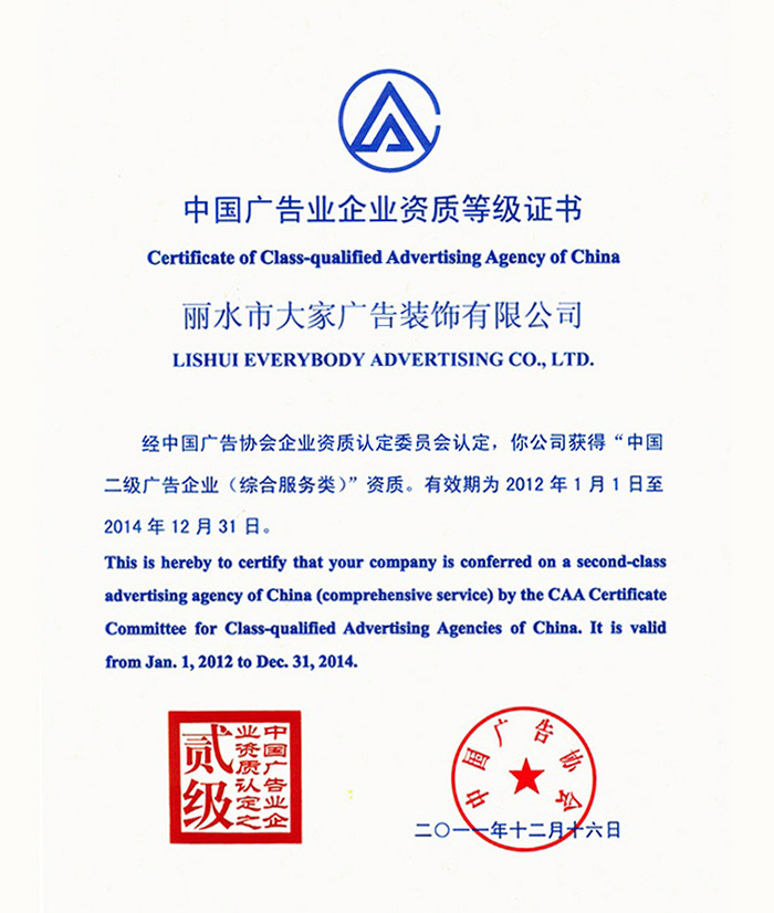 中國廣告業(yè)企業(yè)資質等級證書