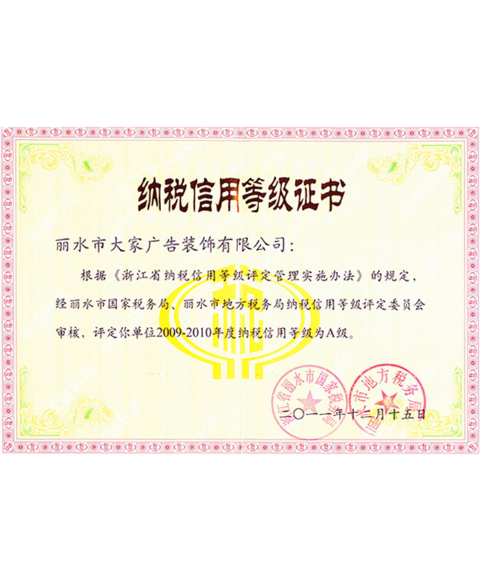 納稅信用等級證書